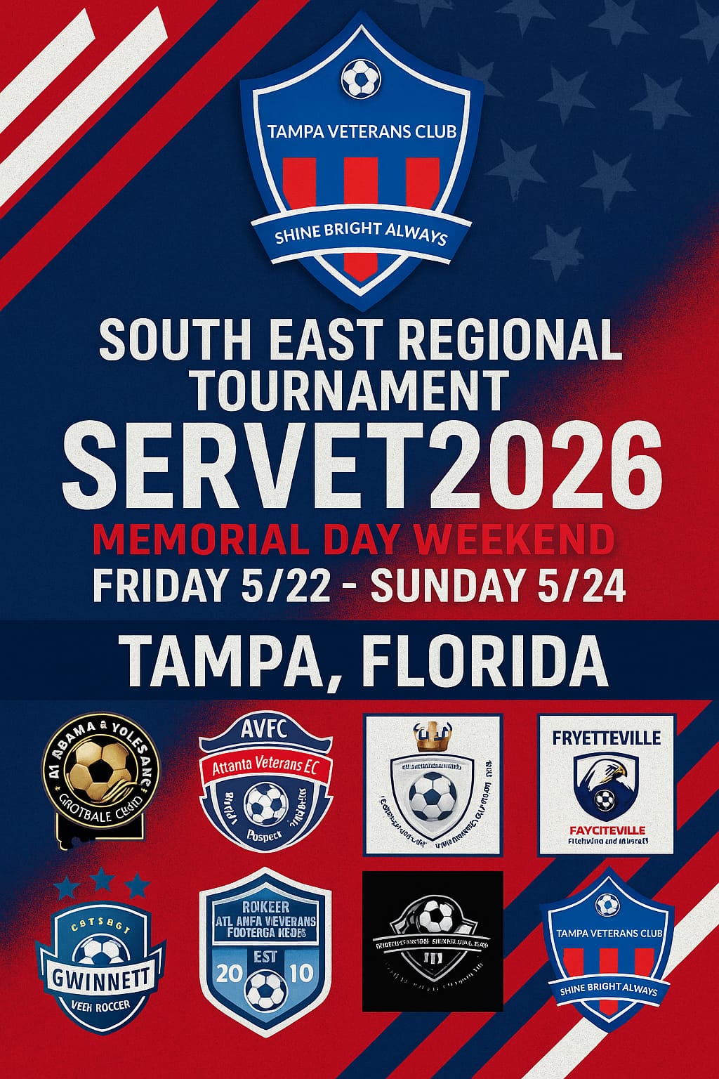 Tampa Veterans F.C. is the proud host of the SEVeRT 2026 that will take place in the City of Tampa, Florida from Friday, May 22 to Sunday, May 24.